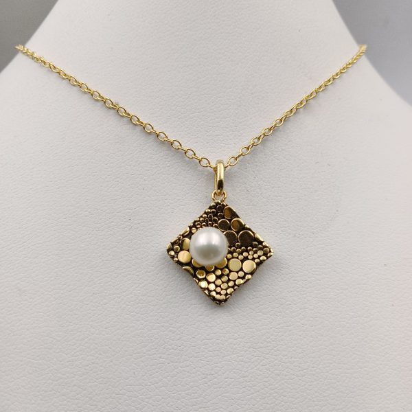 This simple pendant is complete with high polosh finish plated 18K yellow gold over 925 sterling silver with fresh water pearl.                                                                            An everyday staple, designed with a simple style necklace to fit you perfectly, as a happy and smile love with you each monent , makes the perfect gift for you.                                         Designed with sprung clasp and alterable chain length of 45cm, this necklace looks beautiful alone or matching with earing or other pearl rings.